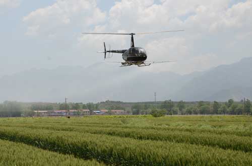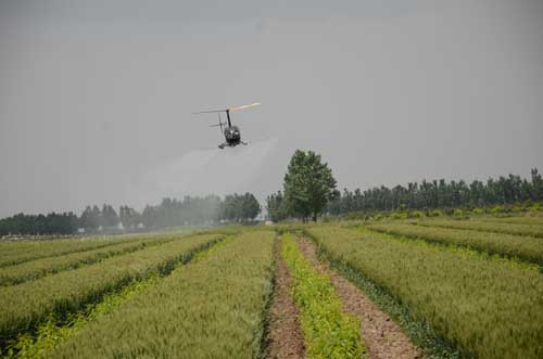 5月份是小麥形成產(chǎn)量的關(guān)鍵時(shí)期,也是病蟲害防治的關(guān)鍵時(shí)期。5月8日起,山西運(yùn)城綠康實(shí)業(yè)有限公司利用專業(yè)化統(tǒng)防統(tǒng)治手段,在山西省聞喜、永濟(jì)、翼城、洪洞等地依次進(jìn)行小麥蚜蟲飛防實(shí)驗(yàn),這次飛防地點(diǎn)的選定主要是農(nóng)田面積比較集中,且周圍村莊相對(duì)稀疏,沒有過高建筑物的地方,非常適合飛機(jī)噴藥的田塊進(jìn)行。