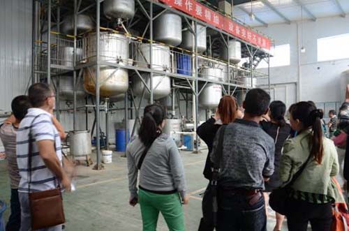 隨后,帶領(lǐng)客戶參觀生產(chǎn)車間,依次參觀了包材庫、成品庫、原藥庫和生產(chǎn)線,綠康公司精選優(yōu)質(zhì)原料,制造優(yōu)質(zhì)農(nóng)藥,在產(chǎn)品質(zhì)量方面敢于做保證。整潔的車間、先進的全自動生產(chǎn)線都讓客戶贊不絕口。在生產(chǎn)線上的工人熟練操作,一絲不茍,絕不馬虎,認真的工作態(tài)度讓參觀的客戶深深佩服。